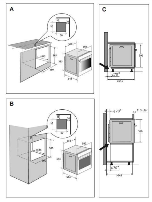 Размеры ниши для встраивания, мм