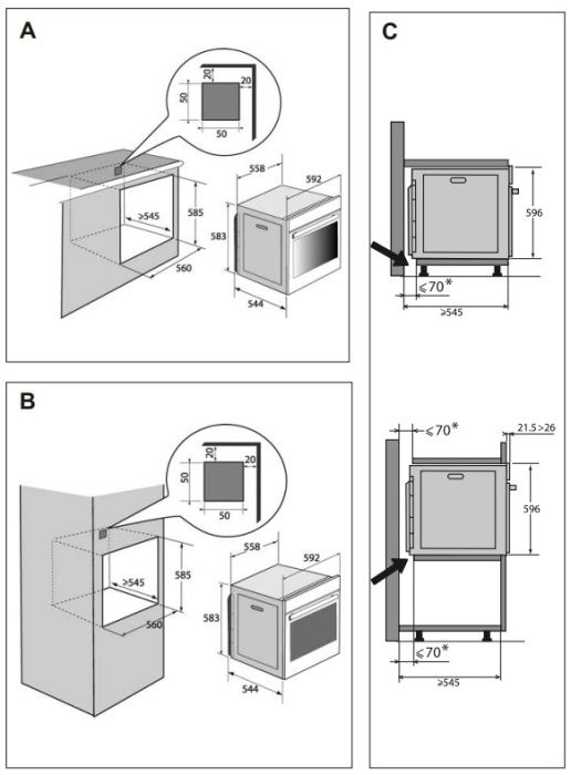 Размеры ниши для встраивания, мм