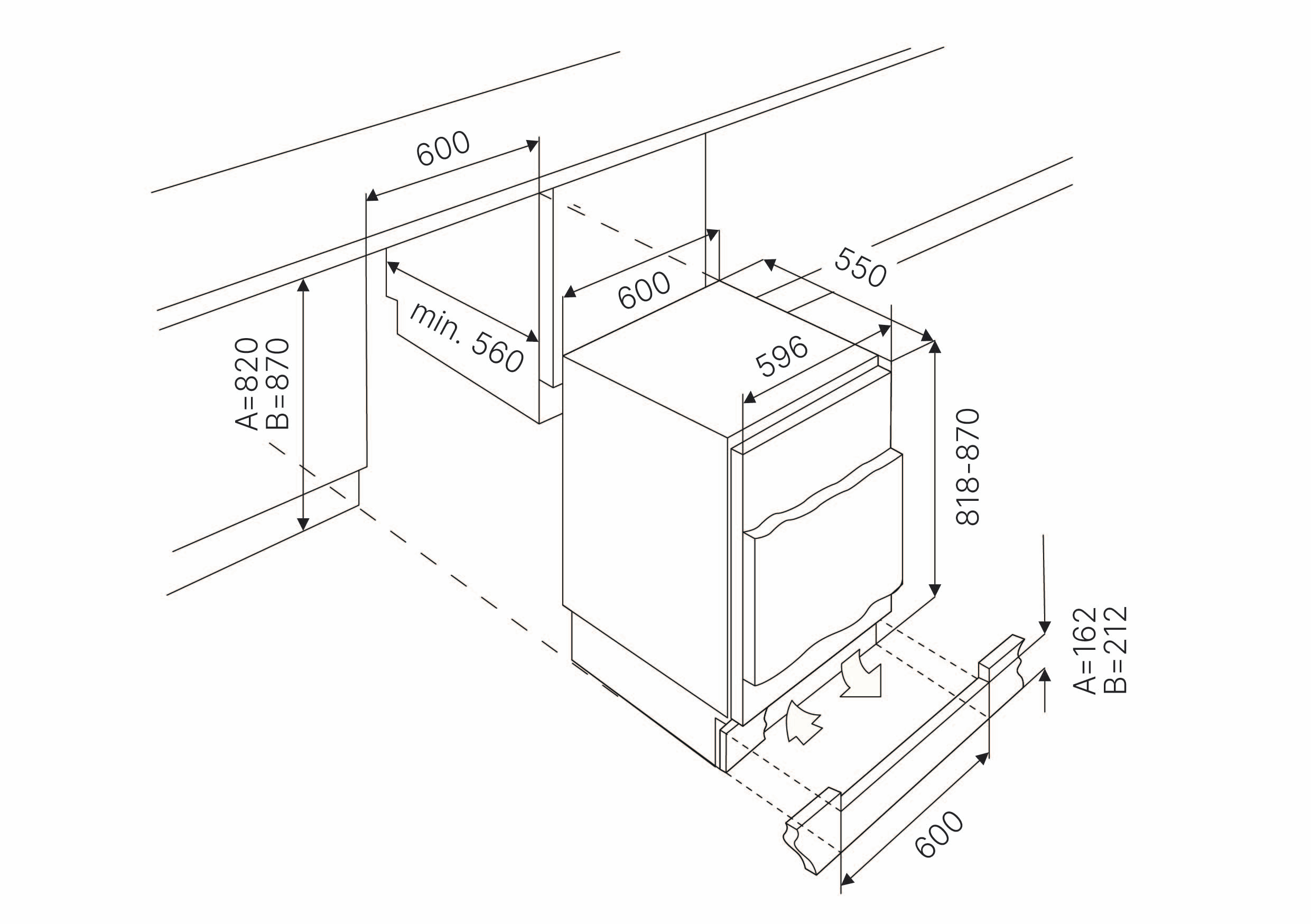 - Размеры ниши Ш x В x Г ≈ 600 × 820-870 × 560 мм