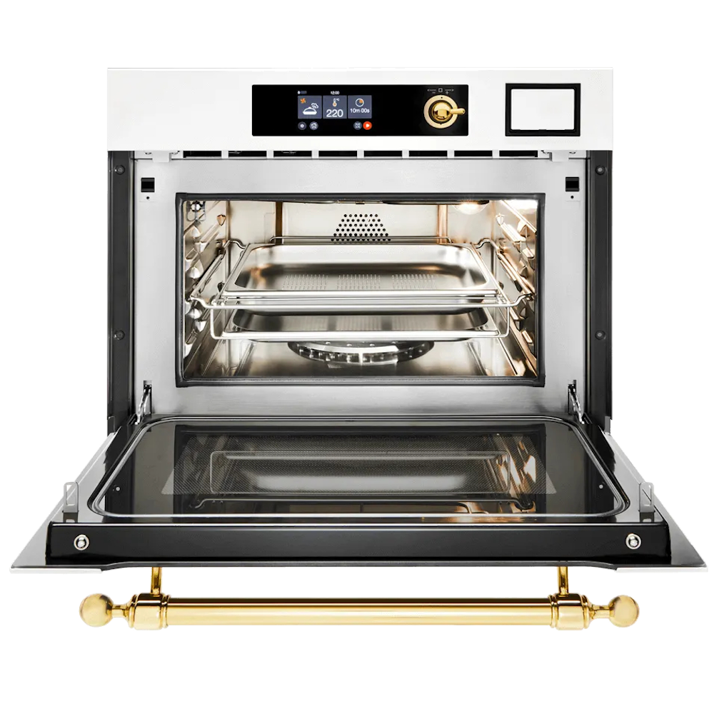 Компактный духовой шкаф Ultracombi 3 в 1 ILVE 645SNHSW/WHG белый (фурн. латунь)