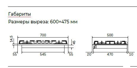 • Малая конфорка Ø 60 мм 2 x 1,8 кВт / 0,4 кВт