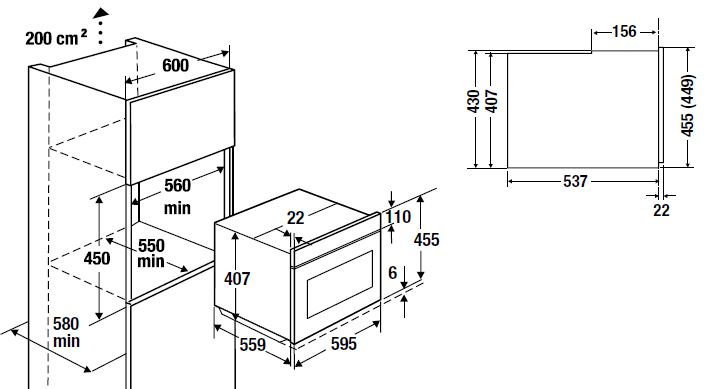 Размеры ниши для встраивания, мм