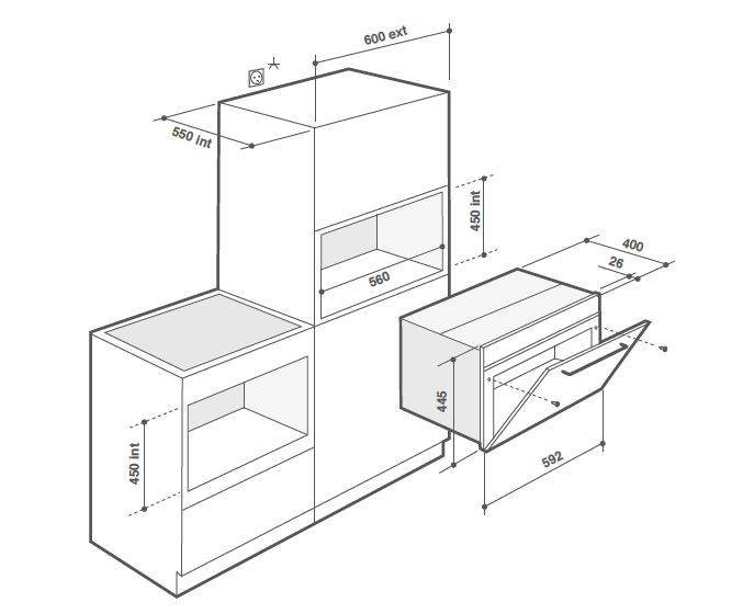 Размеры ниши для встраивания, мм