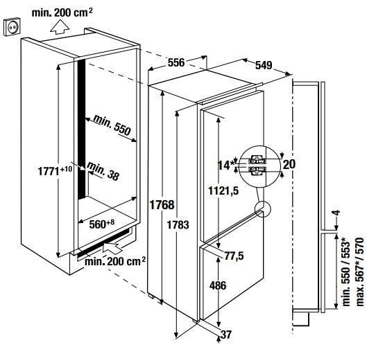 - Размеры ниши Ш x В x Г ≈ 560 x 1780 x 550 мм