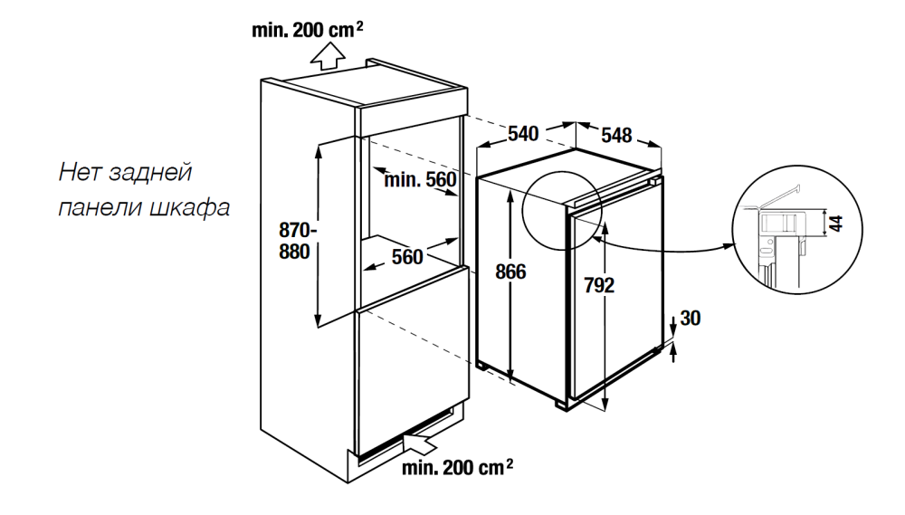 - Размеры ниши Ш x В x Г ок. 560 х 880 х 555 мм