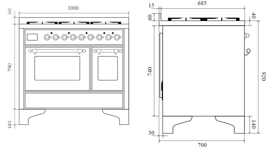 Плита панорамного типа 100 см с двойной электрической духовкой