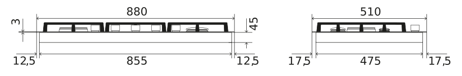 Две маленькие горелки - 2 x 1750 Вт/700 Вт