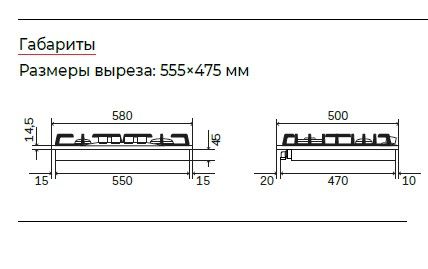 - 2 маленькие конфорки: диаметр 55 мм
