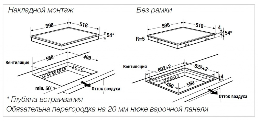 Размеры ниши для встраивания, мм