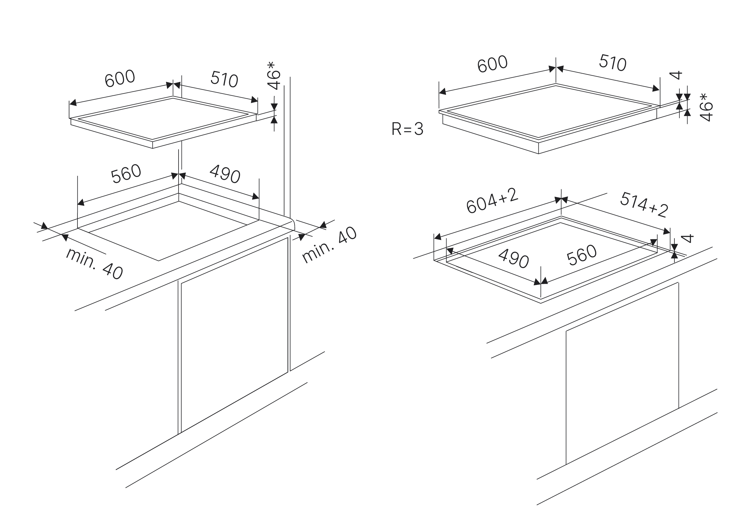 - 4 варочные зоны 210 x 190 мм / 2100 Вт (3700 Вт*)