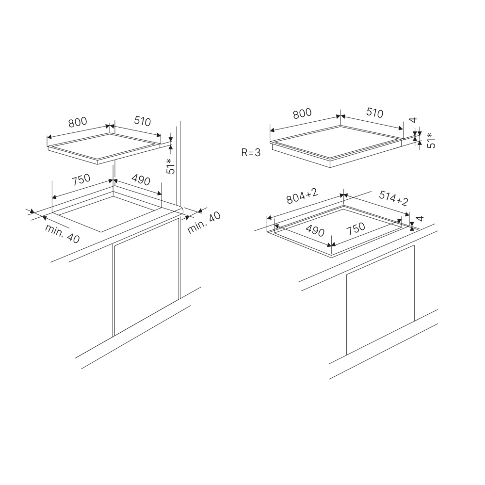 - 3 варочные зоны 210 x 190 мм / 1600 Вт (1850 Вт*)