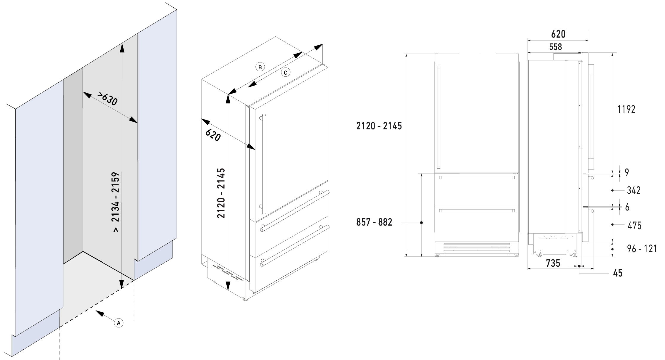 | 17 | Отдельностоящий холодильник / винный шкаф до 2 м | 1 500 | 2 500 | 3 500 | 4 500 | по дог. |