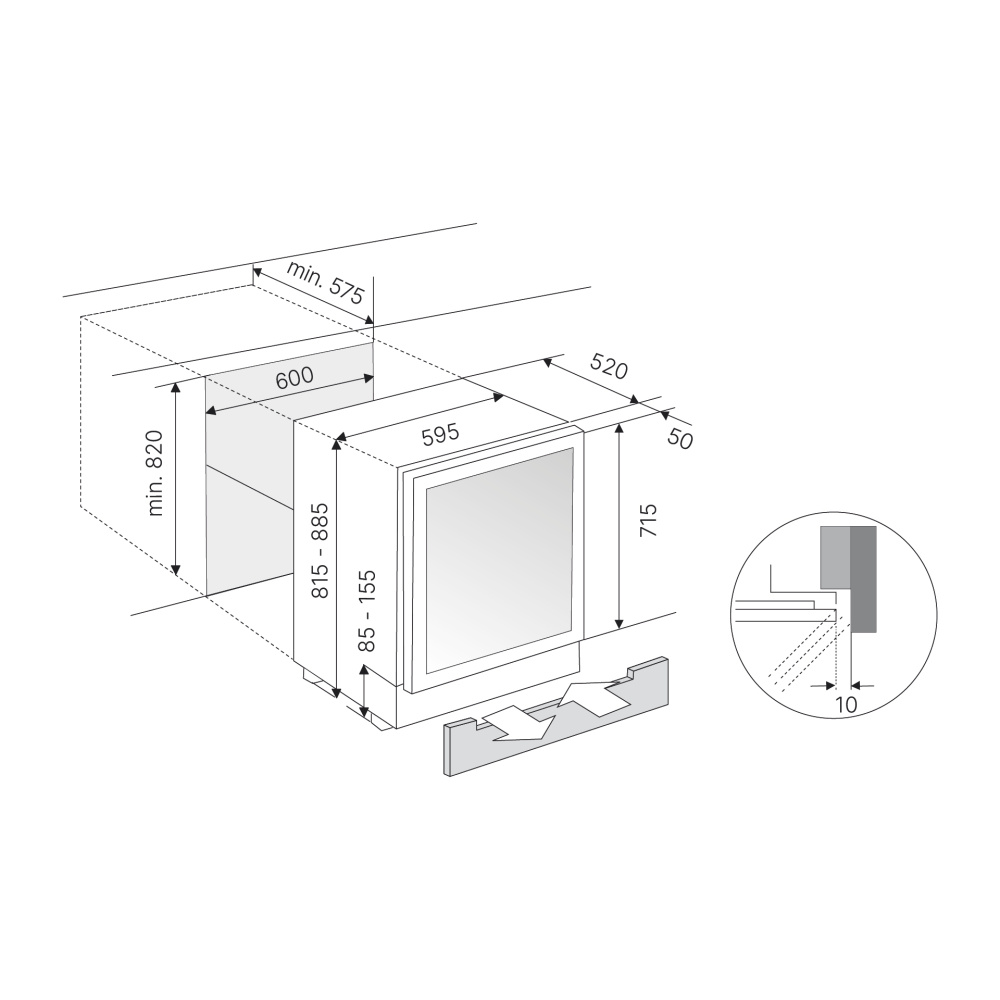 - Возможность установки под столешницу, съемная вентиляционная решетка с передней стороны