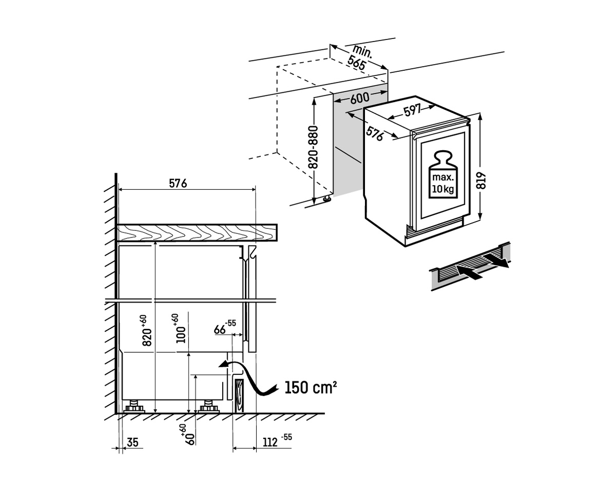 - Габариты ниши Высота/Ширина/Глубина: 82 - 88 / 60 / 56,5 см